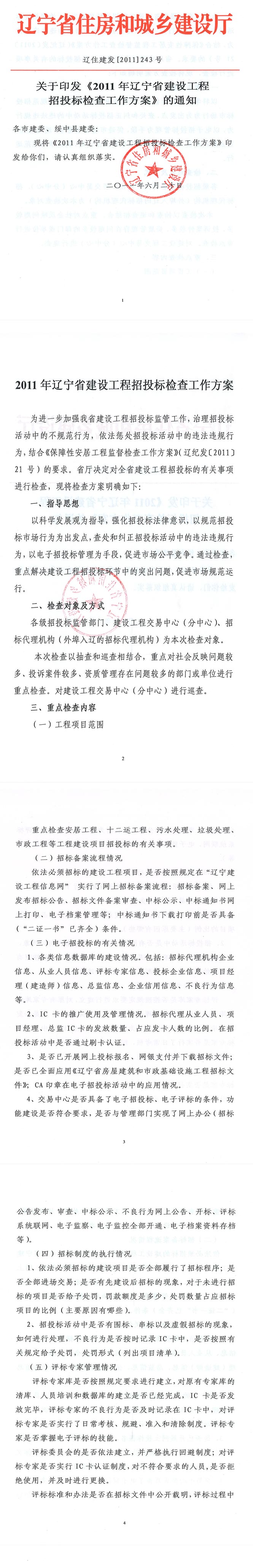 【概要描述】關于印發(fā)《2011年遼寧省建設工程招投標檢查工作方案》的通知