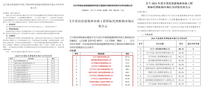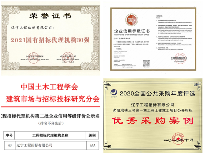 連續(xù)三年榮獲“全省房屋建筑和市政工程招標(biāo)代理機(jī)構(gòu)市場行為評價(jià)第一名”。從2019年起,為加強(qiáng)和完善遼寧地區(qū)招標(biāo)代理機(jī)構(gòu)市場行為監(jiān)管,規(guī)范招標(biāo)代理機(jī)構(gòu)和從業(yè)人員執(zhí)業(yè)行為,落實(shí)招標(biāo)代理機(jī)構(gòu)和從業(yè)人員主體責(zé)任,提高招標(biāo)代理機(jī)構(gòu)綜合素質(zhì)和業(yè)務(wù)水平,遼寧省住房和城鄉(xiāng)建設(shè)廳開展招標(biāo)代理機(jī)構(gòu)市場行為評價(jià)工作,工程招標(biāo)公司憑借完善的內(nèi)控體系、深厚的專業(yè)能力、較強(qiáng)的市場競爭力,得到行業(yè)各方的廣泛認(rèn)可和好評,連續(xù)三年榮獲全省第一名。